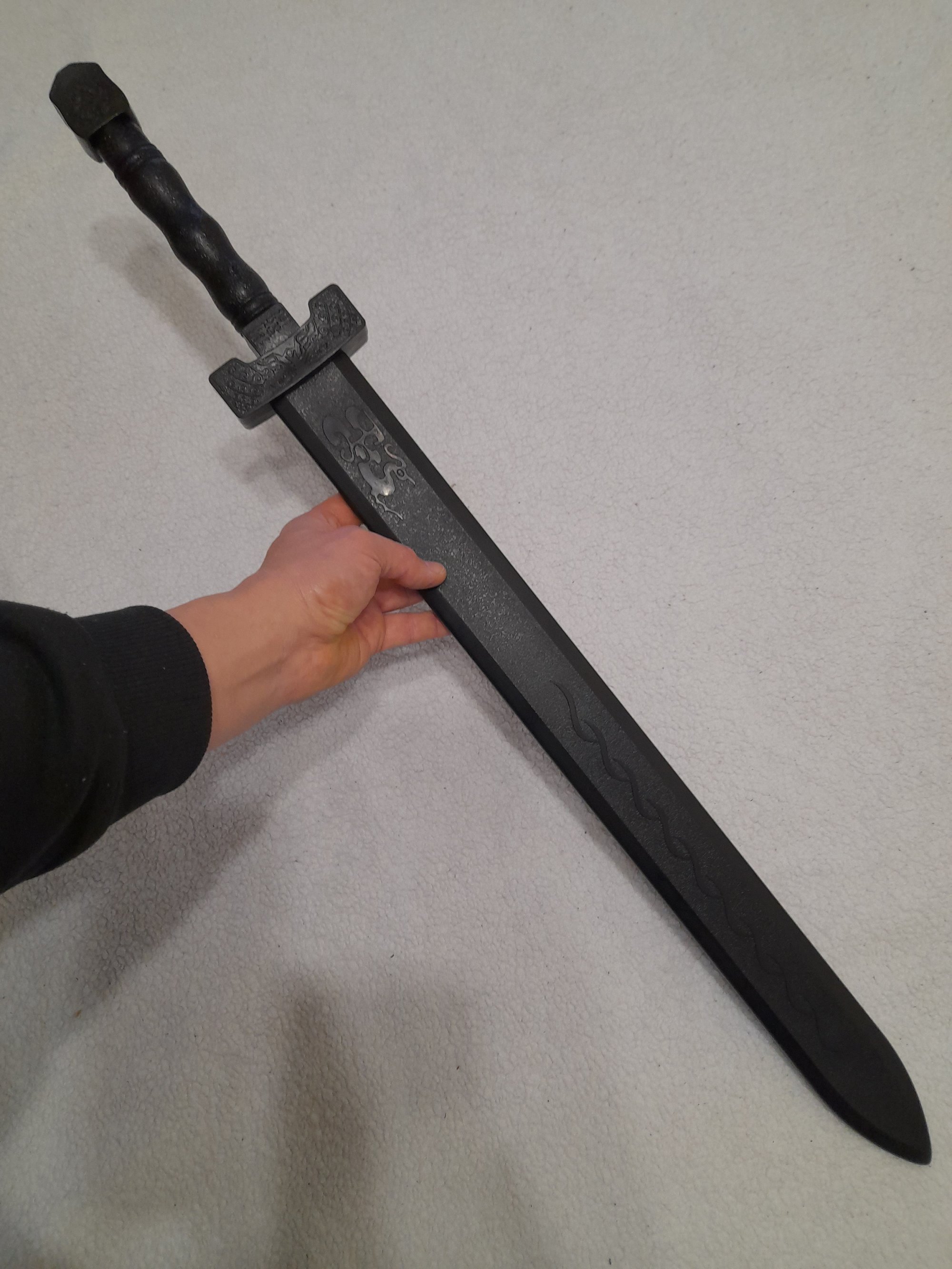 The shape, size and weight of this sword is a very close imitation of a real sword.