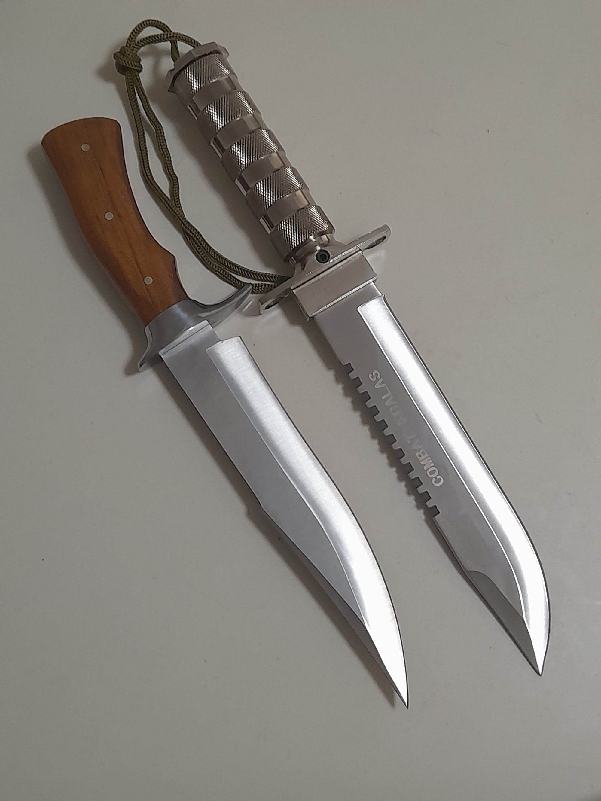 SET 2 Knives - 1 Survival Outdoor Rambo Fixed Blade + 1 Bowie Leather Sheath