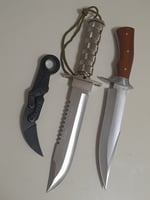 Set 3 Knives - 1 Survival Outdoor Bushcrafting Knife + 1 Bowie Leather Sheath + 1 Folding Karambit