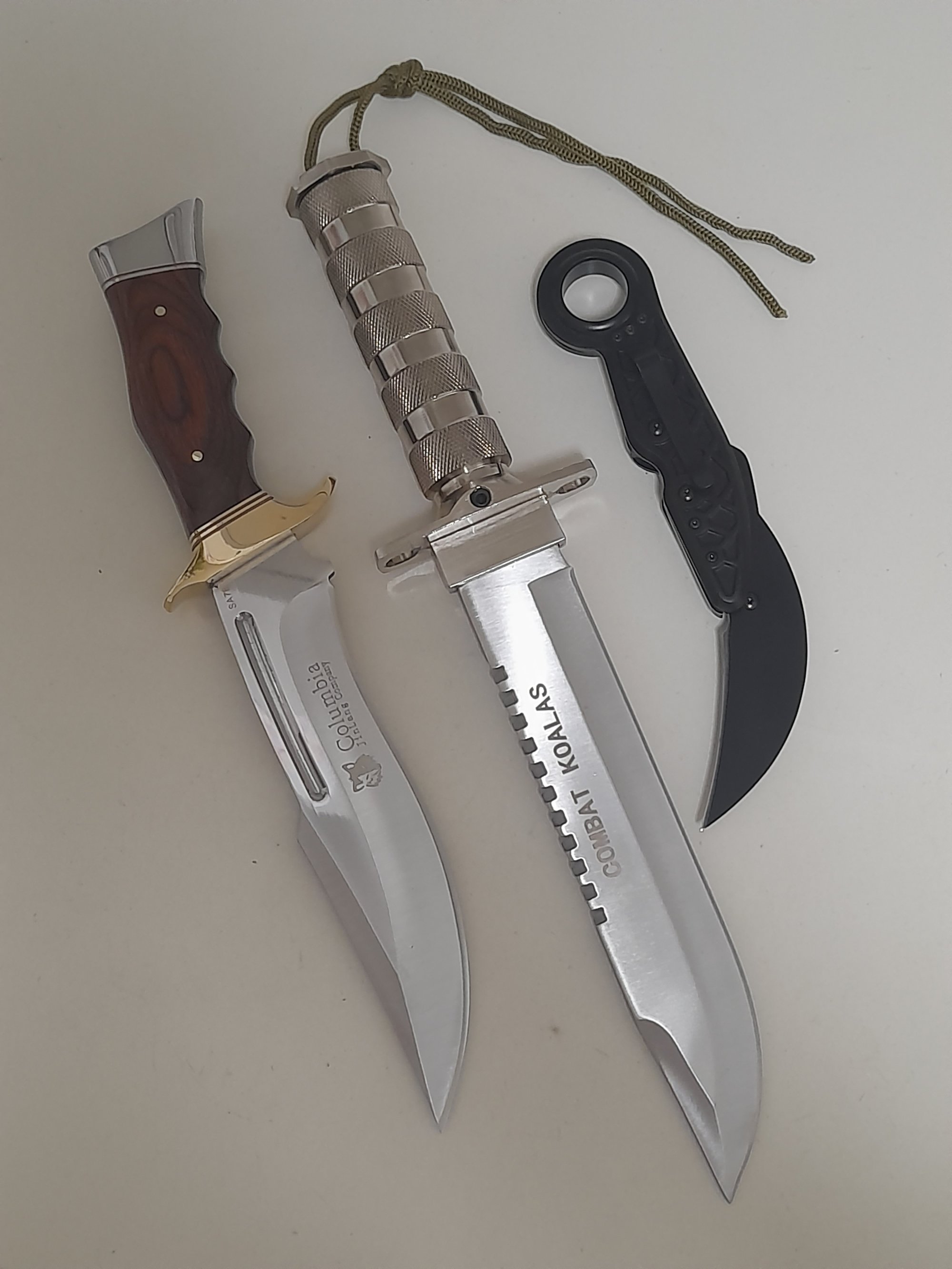 SET 3 Knives - 1 Survival Outdoor Rambo Bushcrafting Fixed Blade Knife + 1 Bowie Hunting Columbia + 1 Folding Karambit