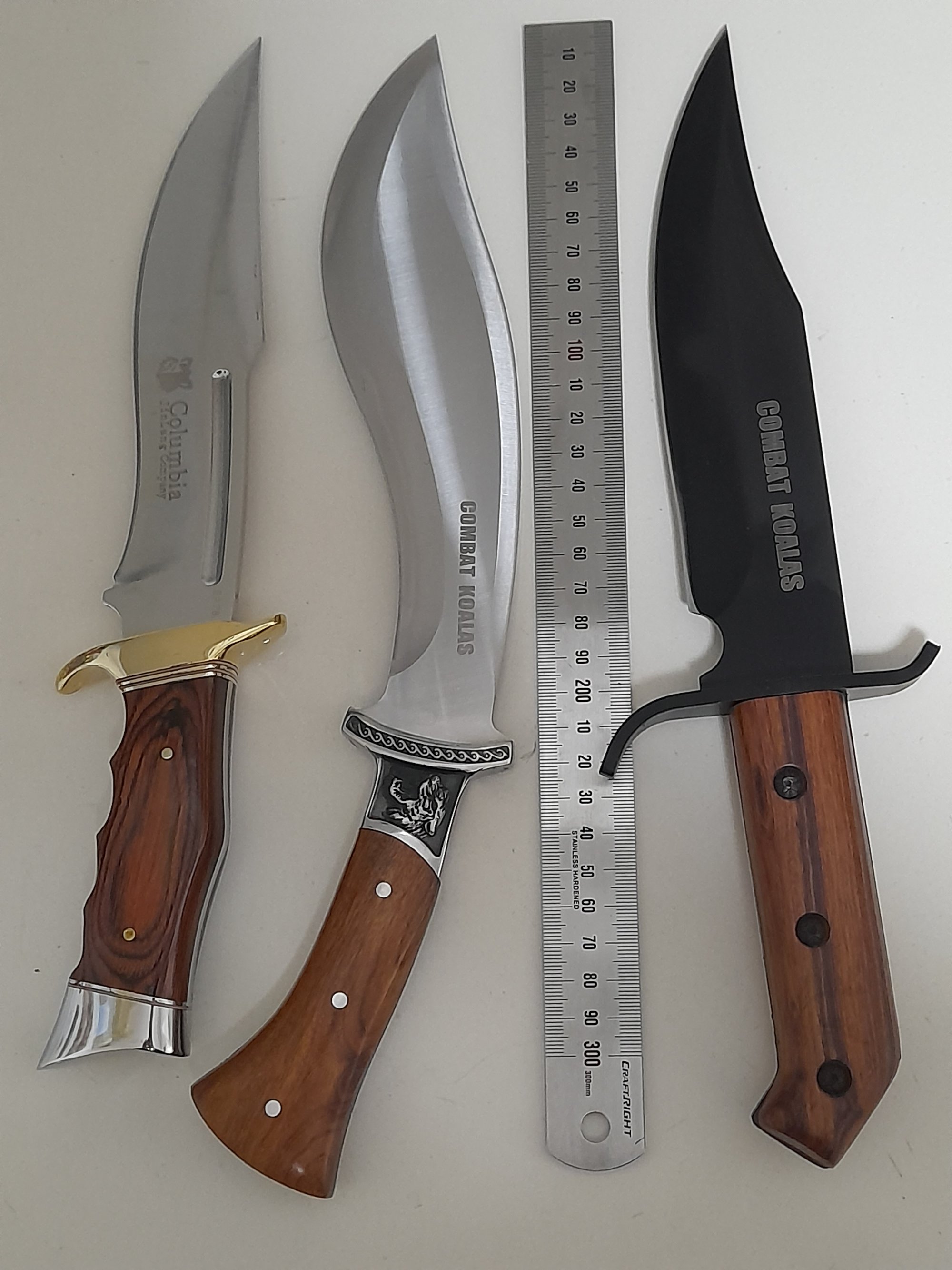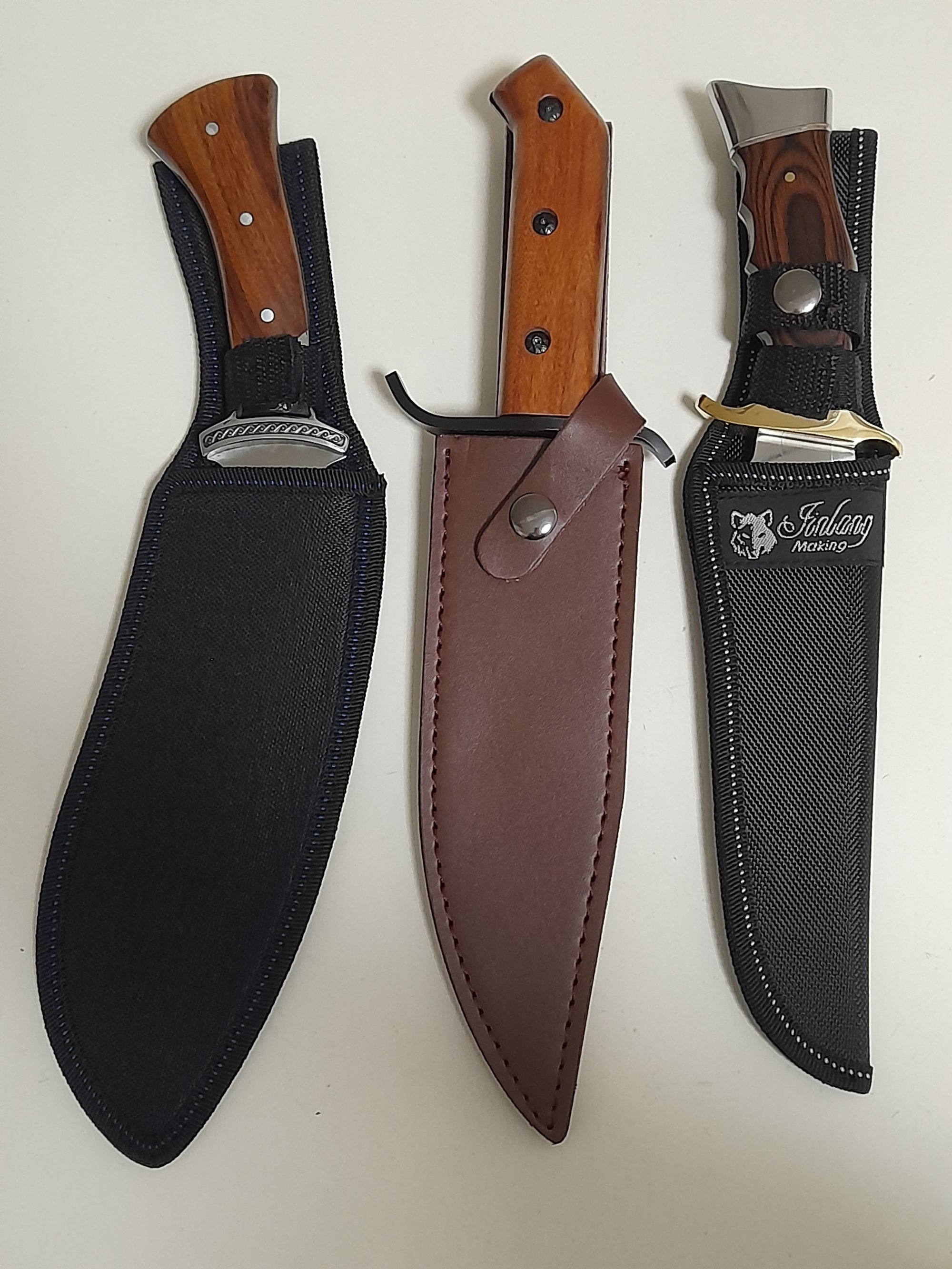 SET 3 Knives - Kukri Heavy Duty Hunting Knife , 2 Bowie Knives with Leather and Nylon Sheath